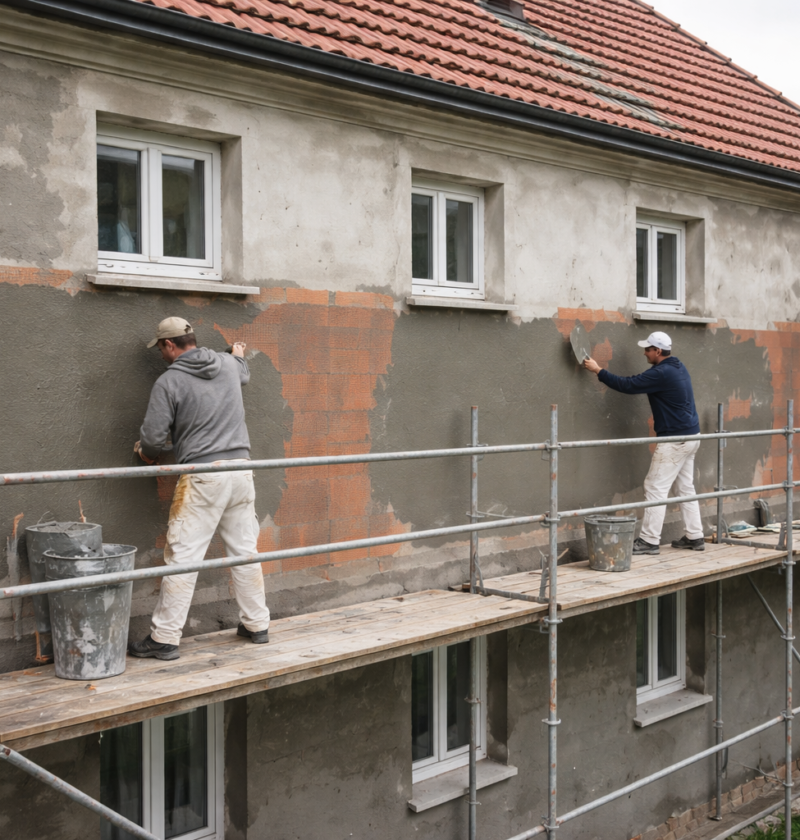 Veliko slabih obnov je izvedenih v neprimernih pogojih. Prehitro sušenje zaradi sonca in vetra povzroči mikro razpoke, prepočasno sušenje zaradi mraza pa oslabi vezavo cementnih komponent. Proizvajalci sistemov imajo jasna temperaturna območja za vgradnjo, tipično nad približno 5 stopinj Celzija za večino mokrih procesov, ter zahteve glede zaščite pred dežjem in direktnim soncem. Če je fasada izdelana na žgočem soncu brez senčenja, se napake pokažejo kot lisavost in slabša odpornost. Če se dela tik pred dežjem brez zaščite, se lahko izperejo veziva in nastanejo madeži, ki jih ni več možno enostavno odpraviti.