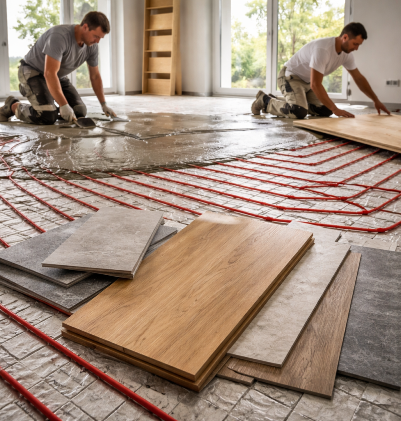 Laminat ostaja pogosta izbira zaradi cene in videza, vendar se v hišah s talnim gretjem hitro pokažejo omejitve. Toplotni upor laminata in podloge lahko občutno poslabša odzivnost ogrevanja, kar pomeni počasnejše segrevanje in več nihanja. Poleg tega je laminat občutljiv na vodo. V družinskih hišah se pogosto zgodi, da se v kuhinji ali pri vhodu ujame vlaga, robovi nabreknejo, poškodb pa ni mogoče popraviti lokalno. Akustika je drugi problem. Če ni izbrana ustrezna podloga in če so prehodi nepravilno izvedeni, nastane značilen votel zvok. Pri novogradnjah, kjer so betonske plošče in estrihi, se zvok v prostorih še poudari, če ni ustrezno rešen udarni hrup.